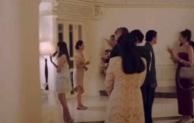 后來Corya去游池旁邊,被別的客人當(dāng)成了服務(wù)員,被三姐妹嘲笑Gorya和她們講道理不成,幸好Mira及時趕來維護Gorya把香擯灑在她們的禮服上,拉著Gorya去樓上換禮服了