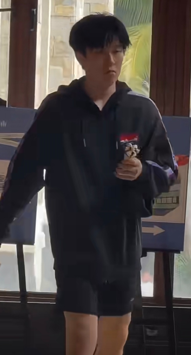沒睡醒的王楚欽異常乖巧,站在隊(duì)伍中,迷迷糊糊,手上拿著顧繁星早上塞給他的半根玉米,一邊發(fā)愣一邊啃著玉米