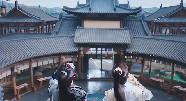 稷下學(xué)堂的屋檐上坐著兩個喝酒的失意人。