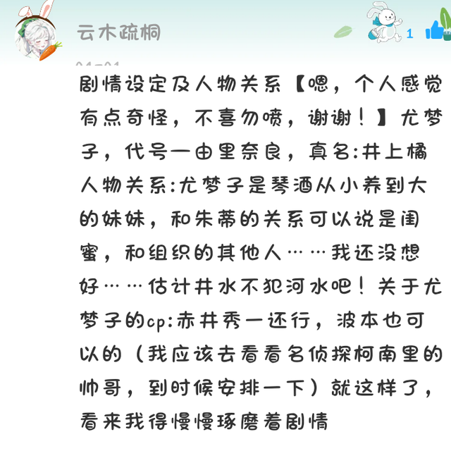 懶癌作者其實(shí)尤夢(mèng)子這個(gè)角色,她不是和爸爸姓的是隨媽媽姓的,我看名偵探柯南里妃英里就沒(méi)有隨夫姓??!畢竟這是私設(shè)劇情,自然是和原劇情不一樣,可能會(huì)ooc