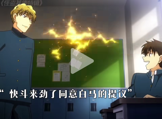 教室里,白馬探和黑羽快斗打賭誰會抓住怪盜基德