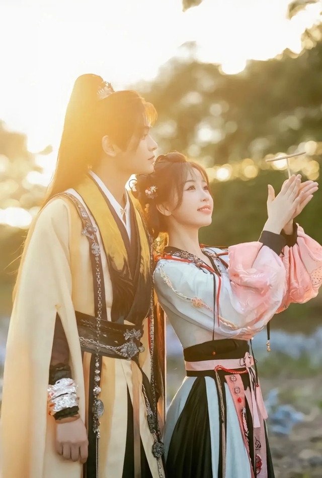 陽光灑在他的身上,他的眼神專注而明亮,仿佛整個世界都凝聚在了前方的女孩身上