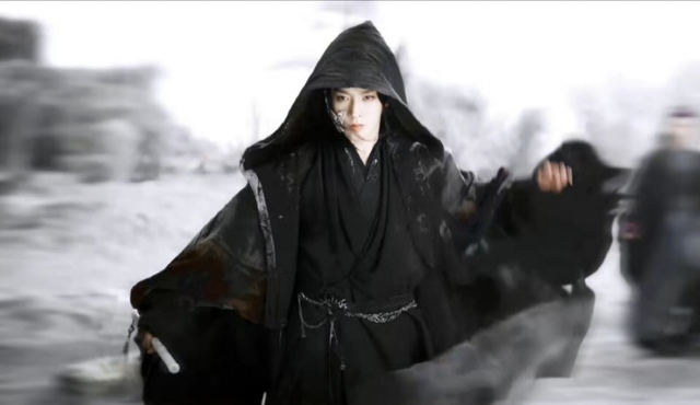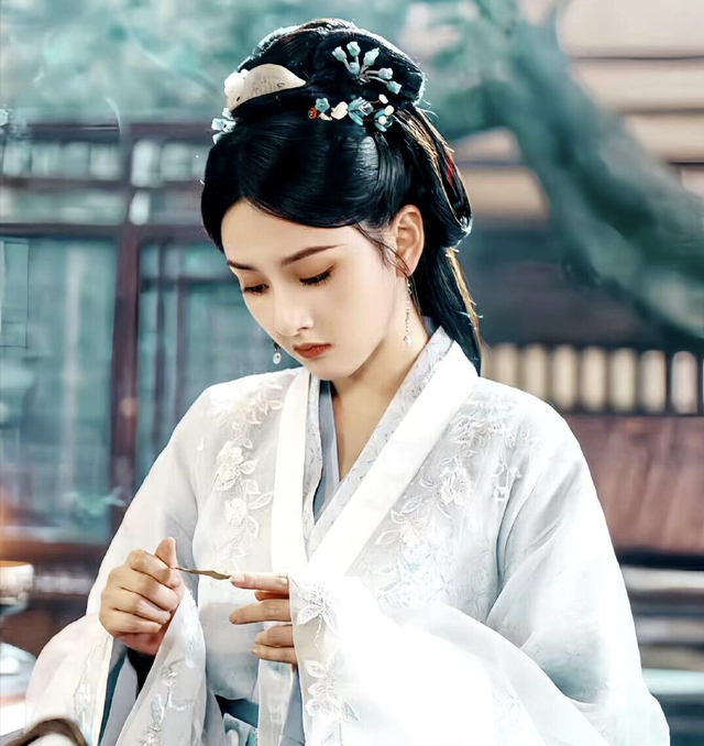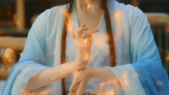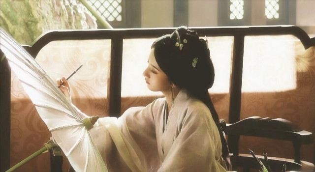 青衣女子堪稱國色天香,即便昭月與之相比,也只能堪堪并肩。她手持一把素傘,只是輕輕在傘面上描繪著一朵山茶花,那專注而優(yōu)雅的姿態(tài),仿佛連時光都為之屏息。山茶花的輪廓隨她的指尖流淌而出,似綻未綻,暗香浮動,仿佛不僅僅是一幅畫,而是一種傾訴,一種情致。女子眉目間淡然自若,卻隱隱透出一抹深邃