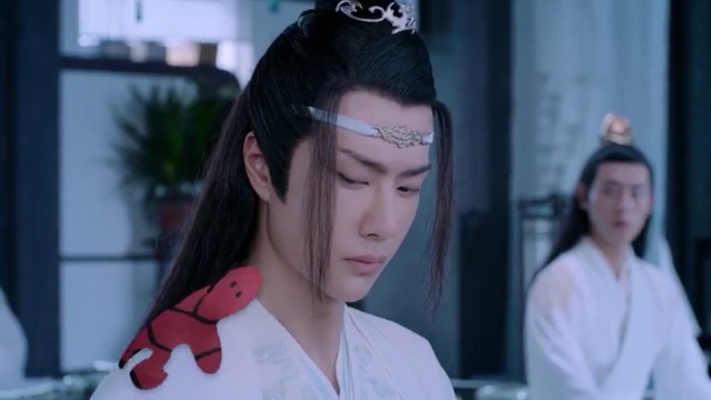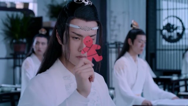 小紙人在藍(lán)湛的肩膀上,他冷眼地看著小紙人。