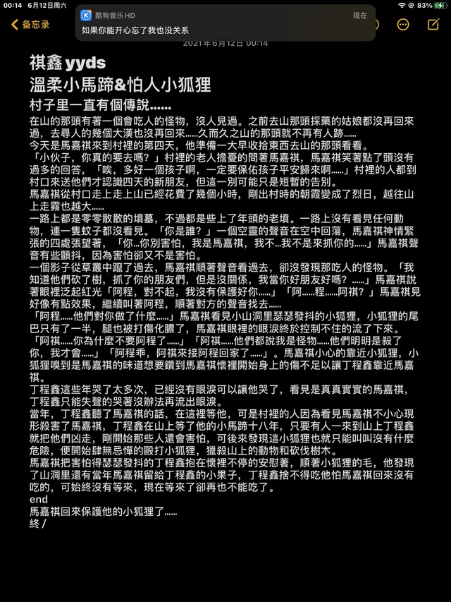 一個(gè)影子從草叢中躥了過去,馬嘉祺順著聲音看過去,卻沒發(fā)現(xiàn)那吃人的怪物?!拔抑浪麄兛沉藰洌チ四愕呐笥褌?,但是沒關(guān)系,我當(dāng)你好朋友好嗎?……”馬嘉祺說著眼里泛起紅光“阿程,對(duì)不起,我沒有保護(hù)好你……”“阿……程……阿祺?”馬嘉祺見好像有點(diǎn)效果,繼續(xù)叫著阿程,順著對(duì)方的聲音找去……