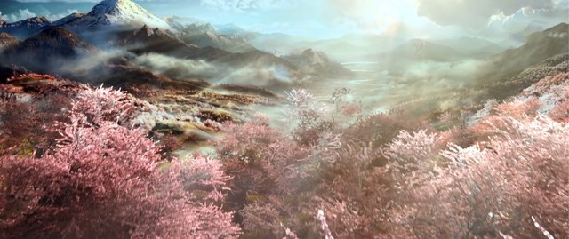 粉色的花瓣漫天飄灑,落在頭頂,落在肩頭,落在手心,如臨仙境。