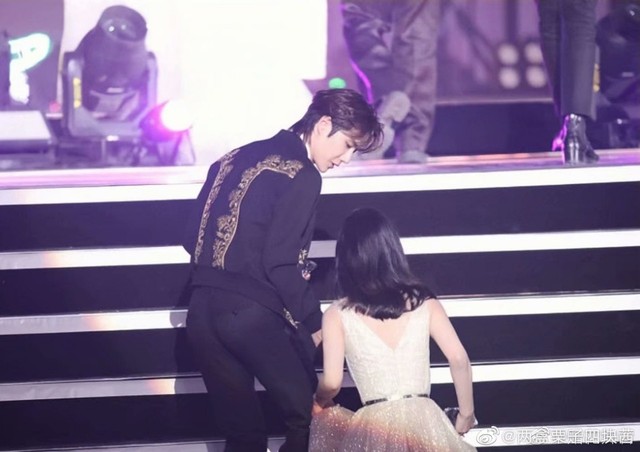 陪著趙麗穎拿了屬于她的獎品,王一博本想著扶一下趙麗穎,奈何趙麗穎心知