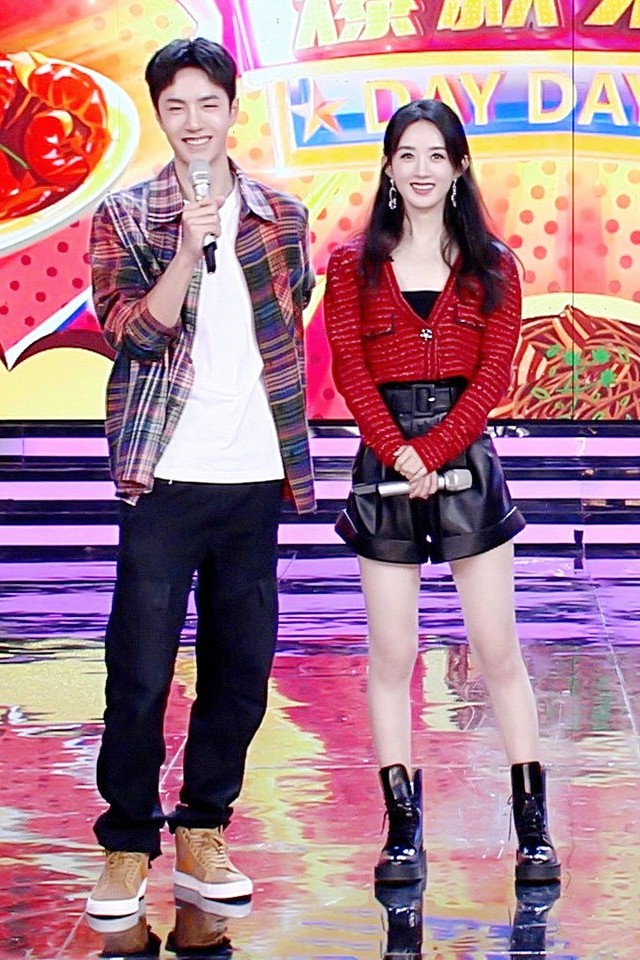 從趙麗穎踏進的那一刻,王一博就沒從他身上離開過。她穿著紅色的小開衫。下面配了一條黑色的短褲。