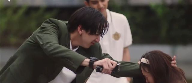 hana哭著想要掙開男生的手,可是力氣太小,根本掙脫不了。