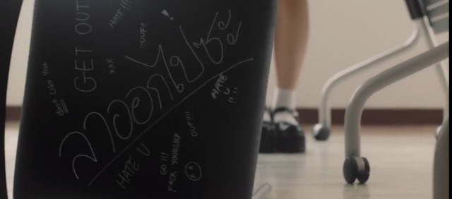 Gorya回到學(xué)校在教室門前用紙擦著臉上的妝,進(jìn)入教室看見(jiàn)的就是同學(xué)在黑板上寫著辱罵自己的語(yǔ)言,旁邊的女生看見(jiàn)gorya假惺惺的到