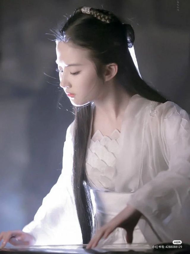 一個(gè)容貌絕色,身穿藍(lán)氏宗主家袍的女子在琴前坐下,戴著抹額,嘴含笑意。